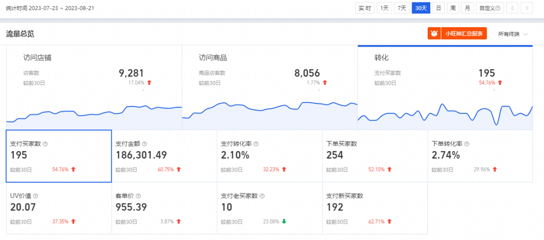 樂涔通過多渠道付費布局,結合優化店鋪基礎圖片設置,30天提升店鋪銷售額30%,支付金額上升72%,支付新賣家增加62.7%,流量提升17%,助力商家成長。